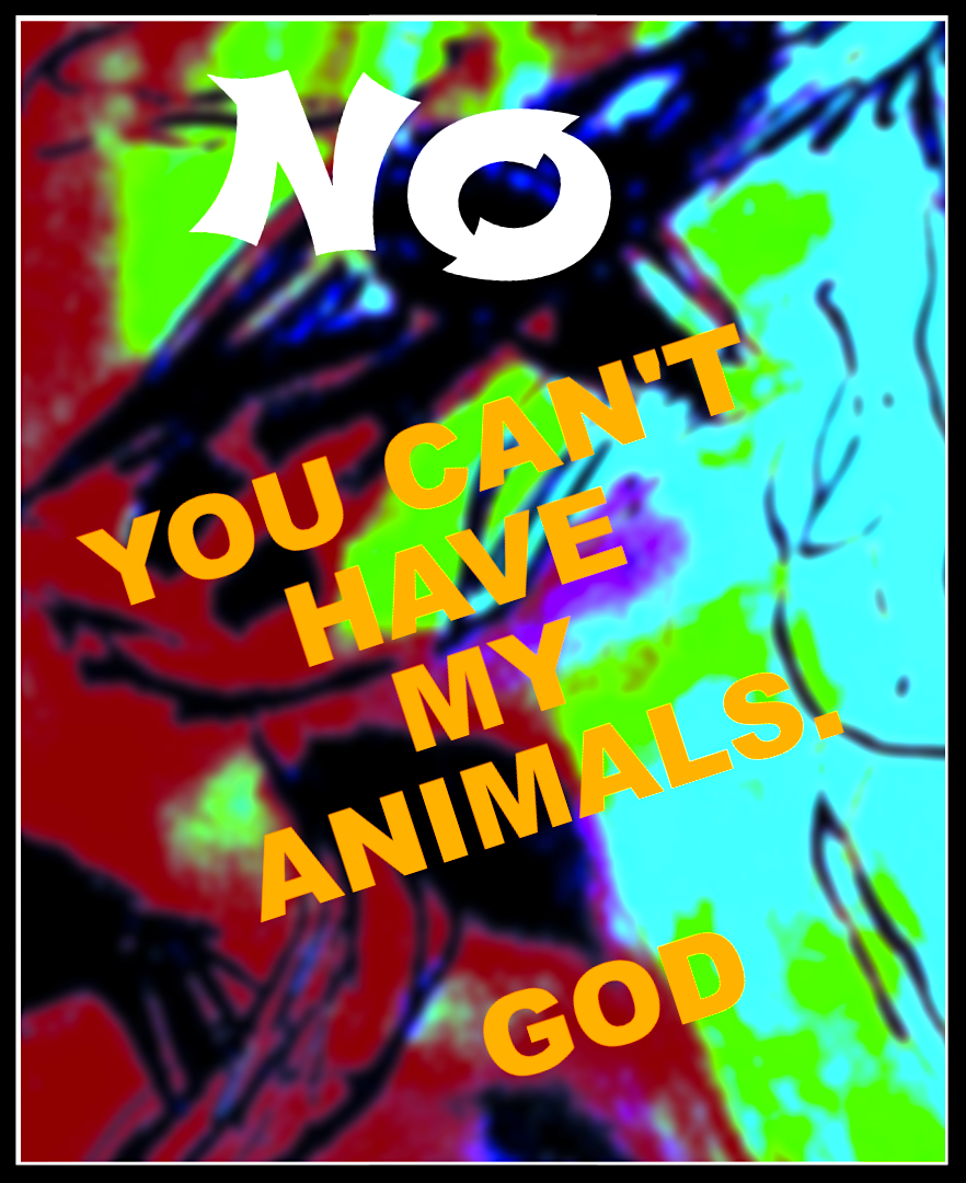 It’s okay to have fun while you do what’s right. It’s okay to laugh. God, my God, wants happiness. Every burst of laughter coming from one of It’s animal’s mouths delight’s It to no end; That’s one more frown It doesn’t have to turn upside down. So, laugh. Have fun. Enjoy your life. Just don’t kill the animals. That’s all. Not a lot to ask. And don’t participate by eating the catches of other people. If you do, try harder next time, till you get it right. I’m tired and sick and fed up and depressed (that doesn’t mean I’m not happy) over walking down the aisles of death in every supermarket in the world.