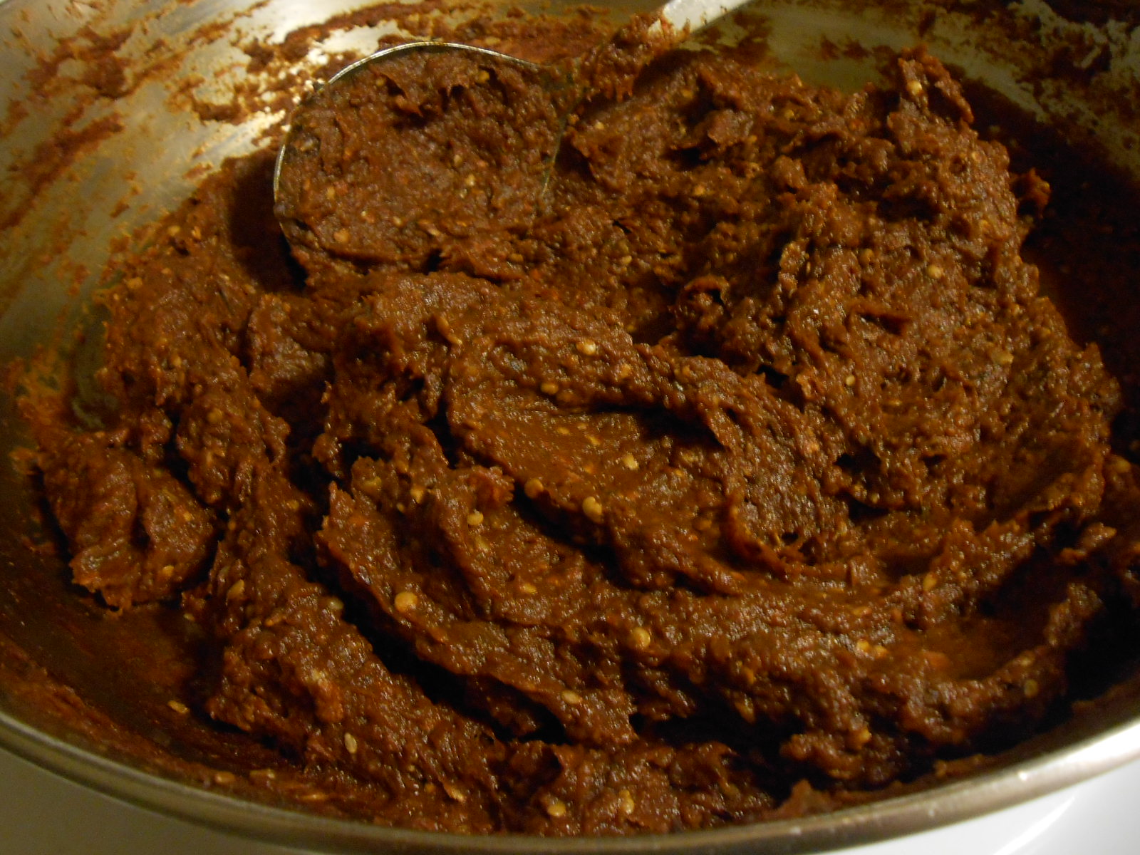 Stir well, keeping on medium or medium-low heat for 1 hour, uncovered, stirring every 10 minutes or so. We’re reducing the mixture to a paste.