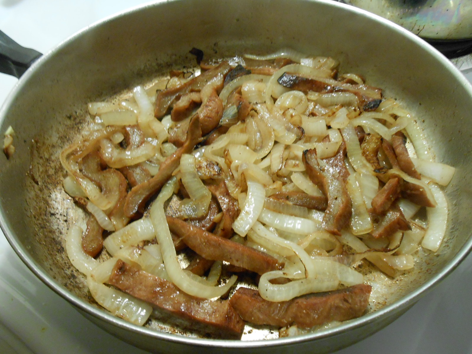 Add Vegan Duck, and a little more salt and pepper to taste. Saute till onion is soft and caramelized to your liking.