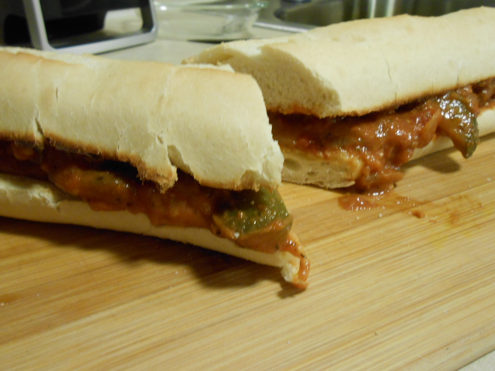 Broil the insides of a tough-skinned sub roll. Drizzle one side with lots of extra virgin olive oil, then spoon the ratatouille mix on the other side. Close, cut and eat. Absolutely delicious!