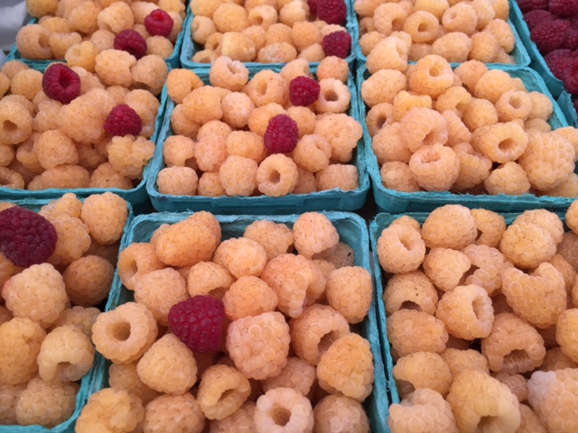 When I was picking apples with my family at Hamilton Orchard in Massachusetts I saw these yellow raspberries for the first time ever. Of course I had to have one. The guy selling them preferred the red variety for flavor. The red did have a stronger raspberry flavor, but the yellow seemed less seedy, which I liked, and didn’t fall apart as easily. So yes, I like them!