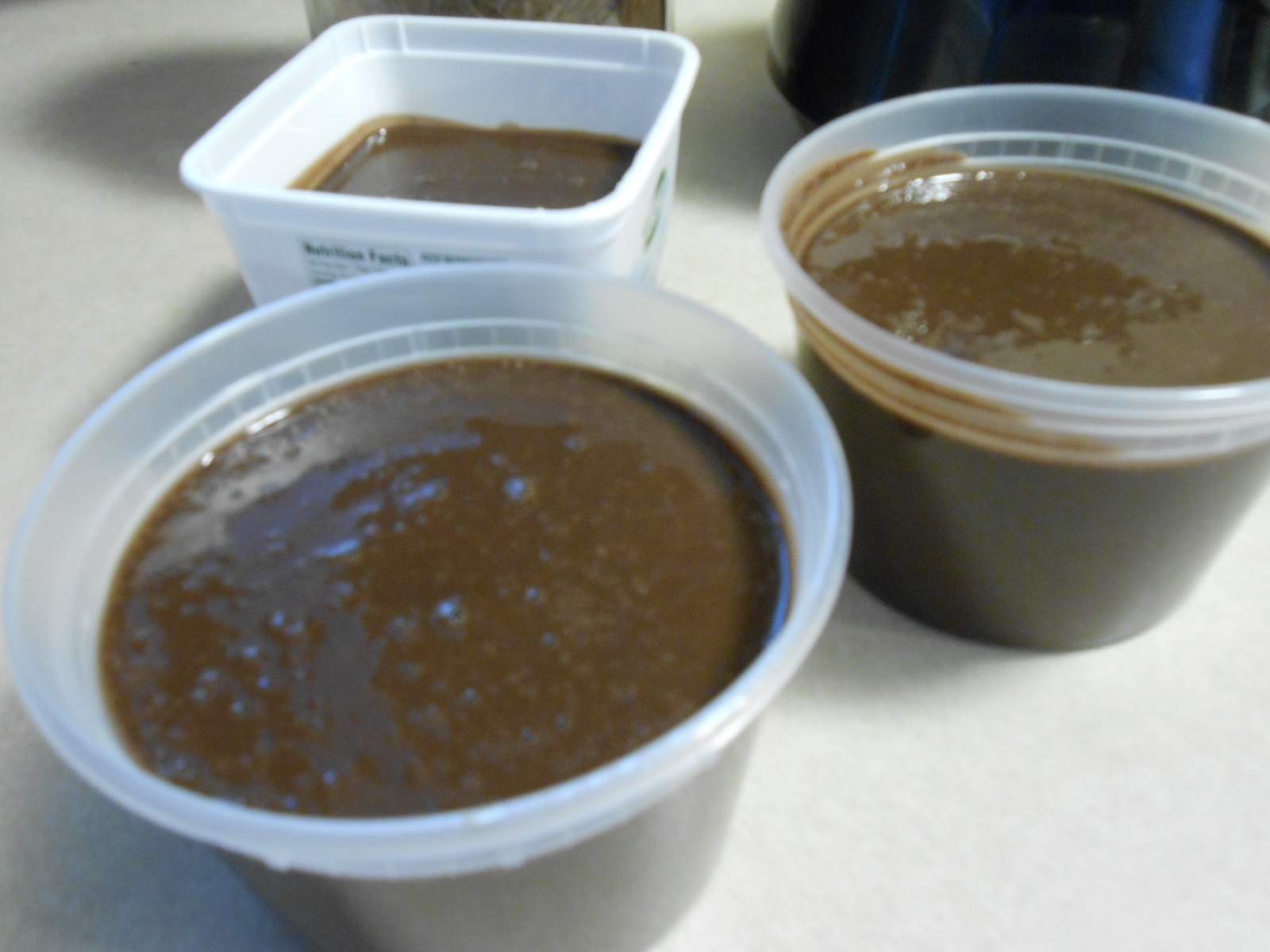 Pour into 2 cup covered containers and freeze till solid.