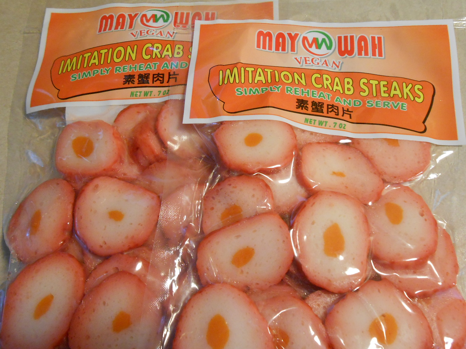 The vegan shrimp and crab are out. They both smelled like imitation shrimp and crab, but the taste didn’t match the smell. The texture of the shrimp was too rubbery, and the crab too hard. No matter what I did to them, I couldn’t alter the texture, whereby it resembled in any way the imitation crab I’ve eaten, and the shrimp, except for the appearance neither one came close to the real shell fish. But maybe that’s how Asians like it.