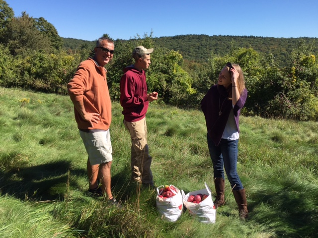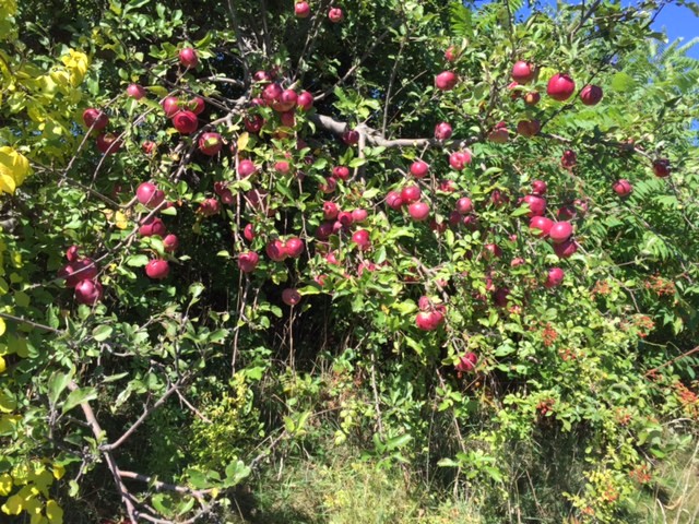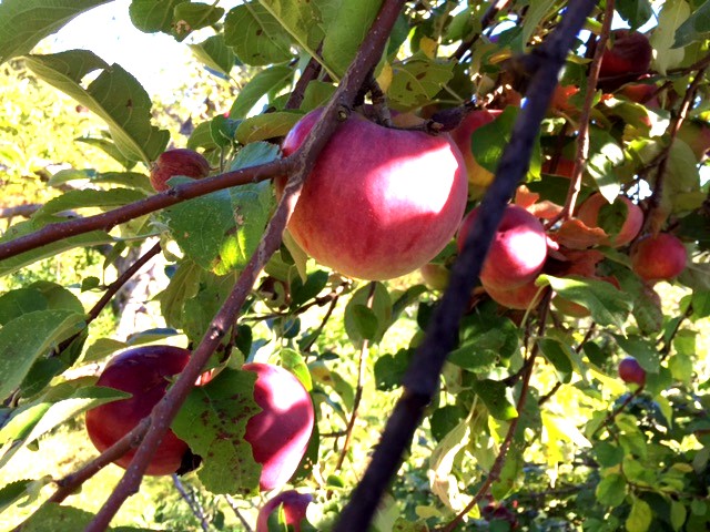 It wasn’t until I heard something falling to the ground, looked around and saw a bunch of apple cores – fresh – that I looked up and there was Steve in the tree, sitting on a limb eating apples. McGowans were his favorite.