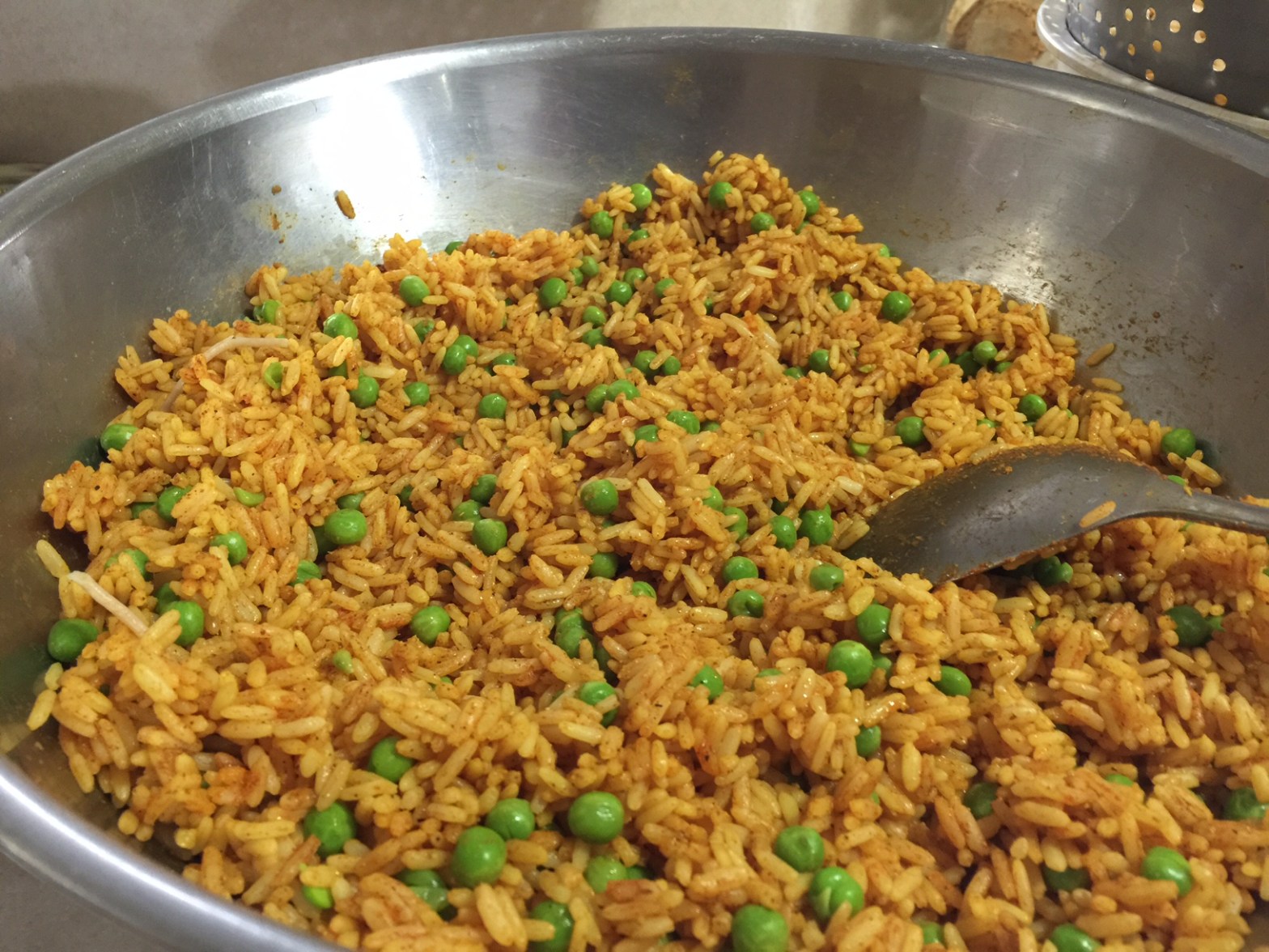 We toss the spices with the rice first, so the spaghetti doesn’t break apart.