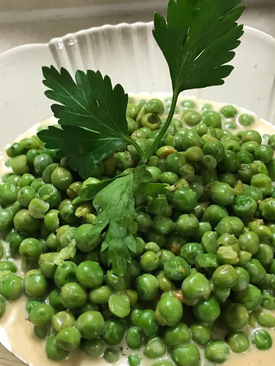 Cooked peas swimming in a umami-rich Creamy Asian Apricot Sauce! Hey, Asians eat creamy. They love creamy! This is for you!