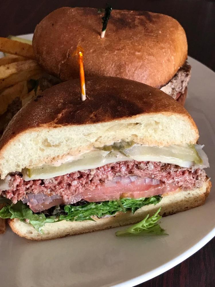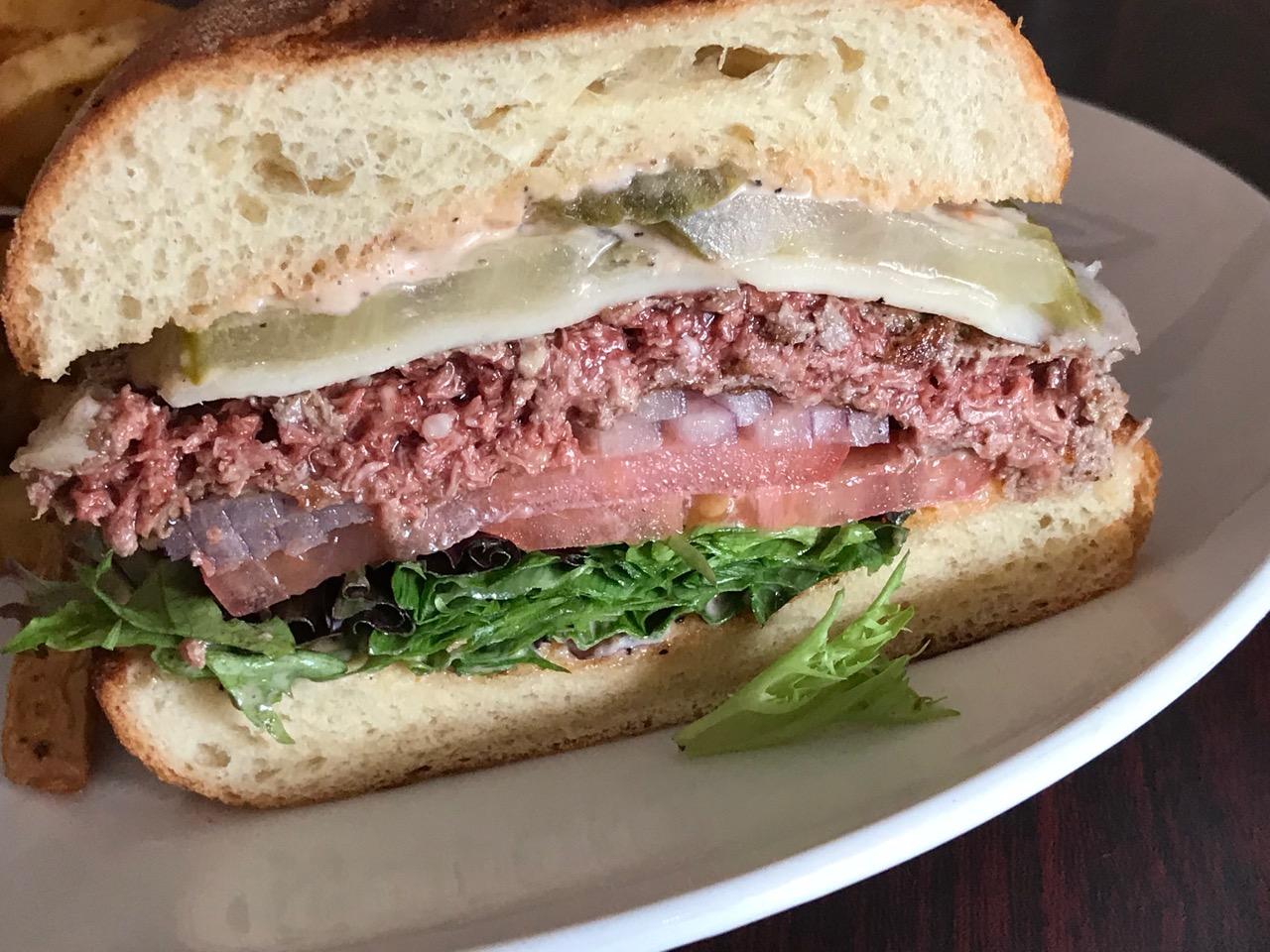 It wasn’t cohesive enough, and of course it plopped out the sides of the sandwich when I bit into it, more like a chicken salad only made with a burger.
