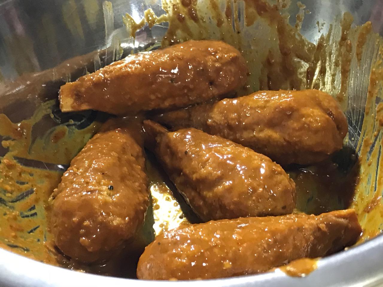 Drizzle Vegan Drumstick Sauce as much as you like, over drumsticks.