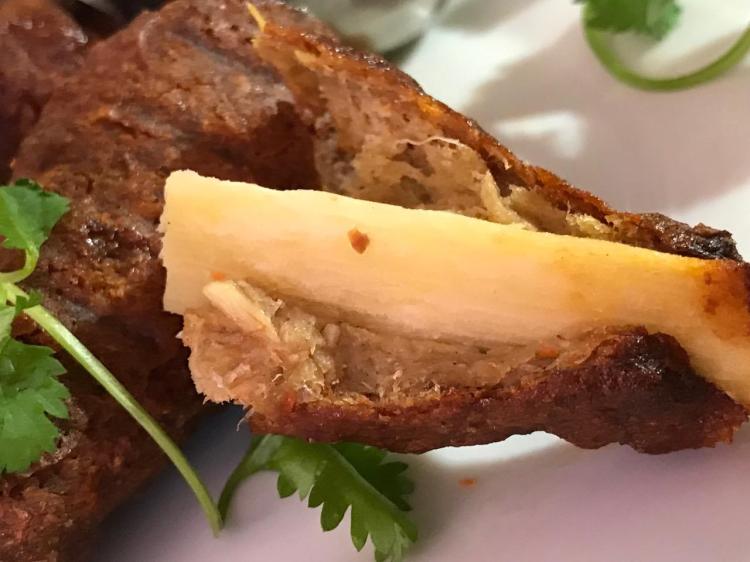 Notes: These are easy to make. May Wah uses a lot of Five Spice in her plant meat preparations, so to mute it a little I use the Balsamic vinegar and the mild versioned sesame seed oil drizzled on top of the sauce in the ramekin for dipping and it was a perfect combination.