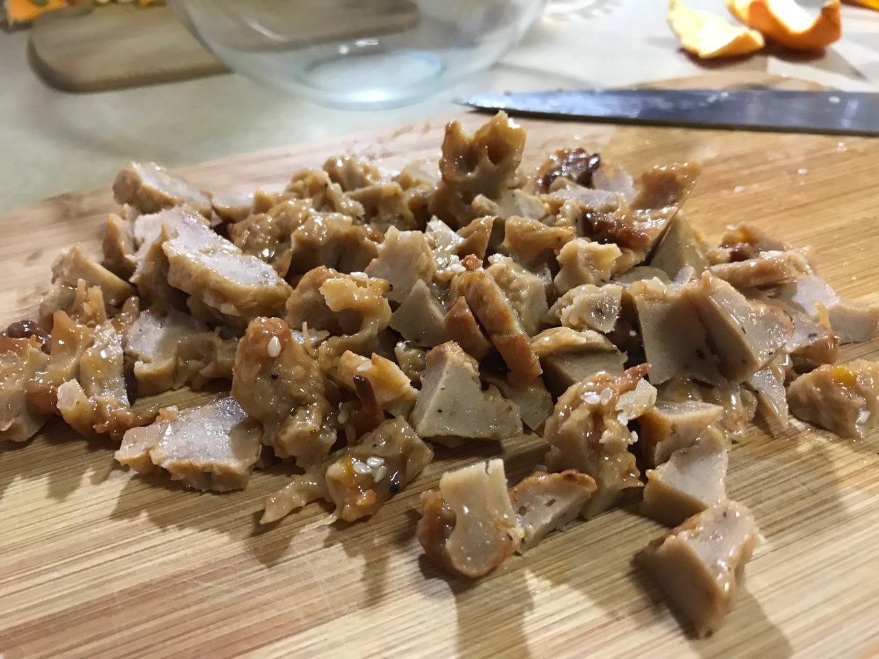 1/2 c. Delight Soy Vegan nuggets, sliced or chopped or both