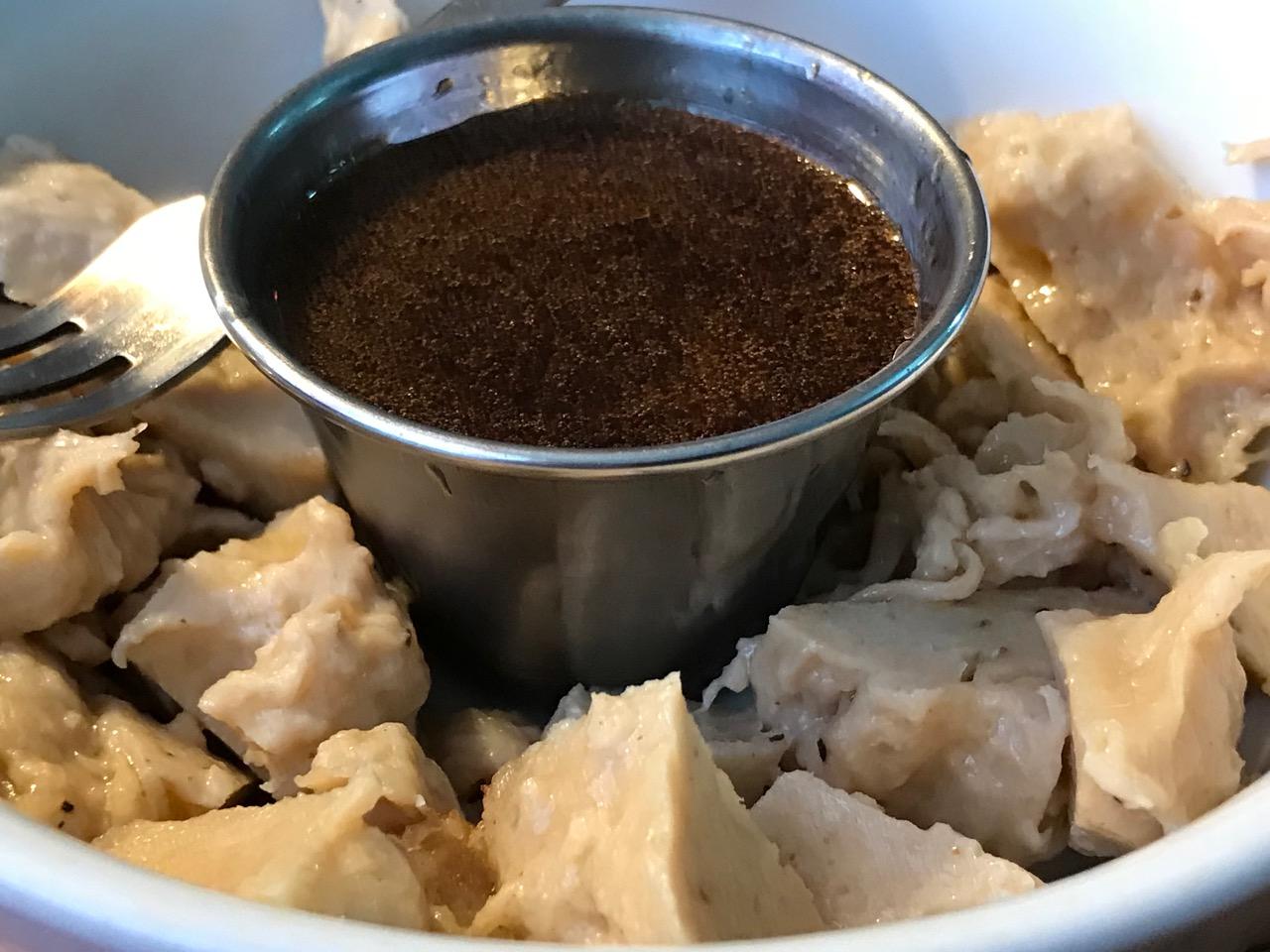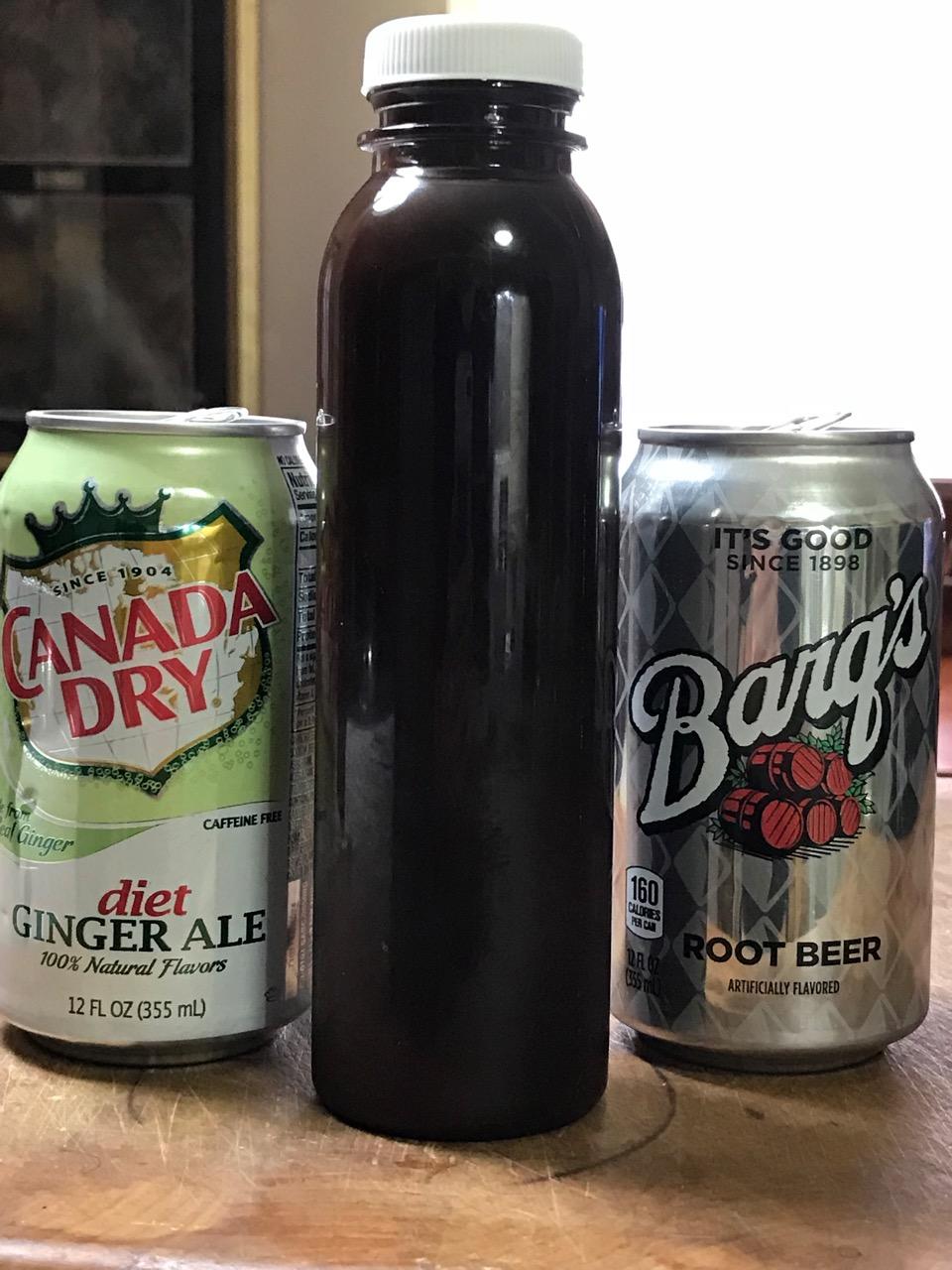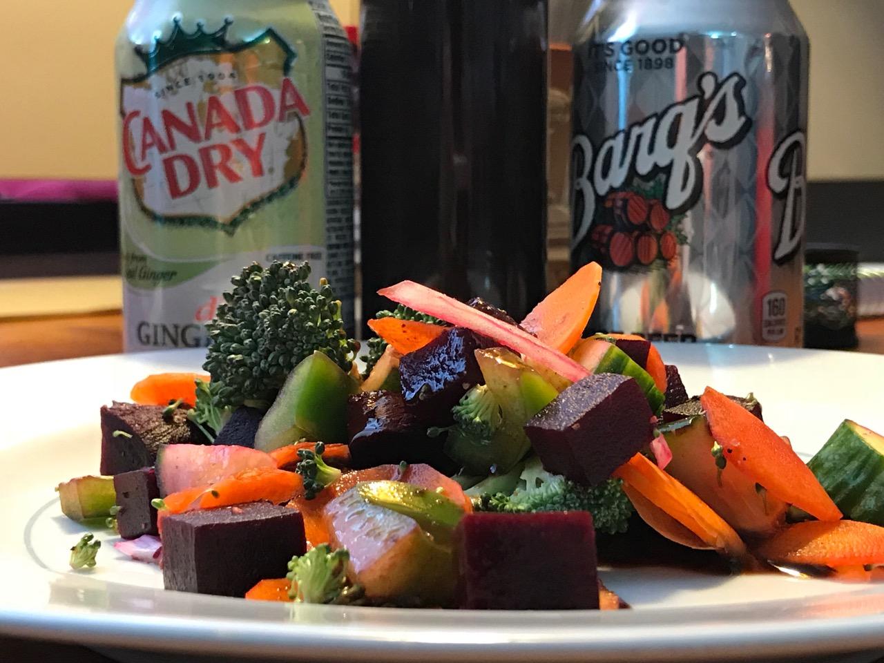 Barq’s Root Beer and Canada Dry diet Ginger Ale mixed with cocoa, dark brown sugar, Balsamic vinegar, coriander and allspice! Different but Delicious! Serve over salad, fresh sliced fruit (I like banana) or as a dipping sauce for veggie chicken nuggets! How about all three? That’ll put a smile on your Fat-Free Animal-Free Friday!