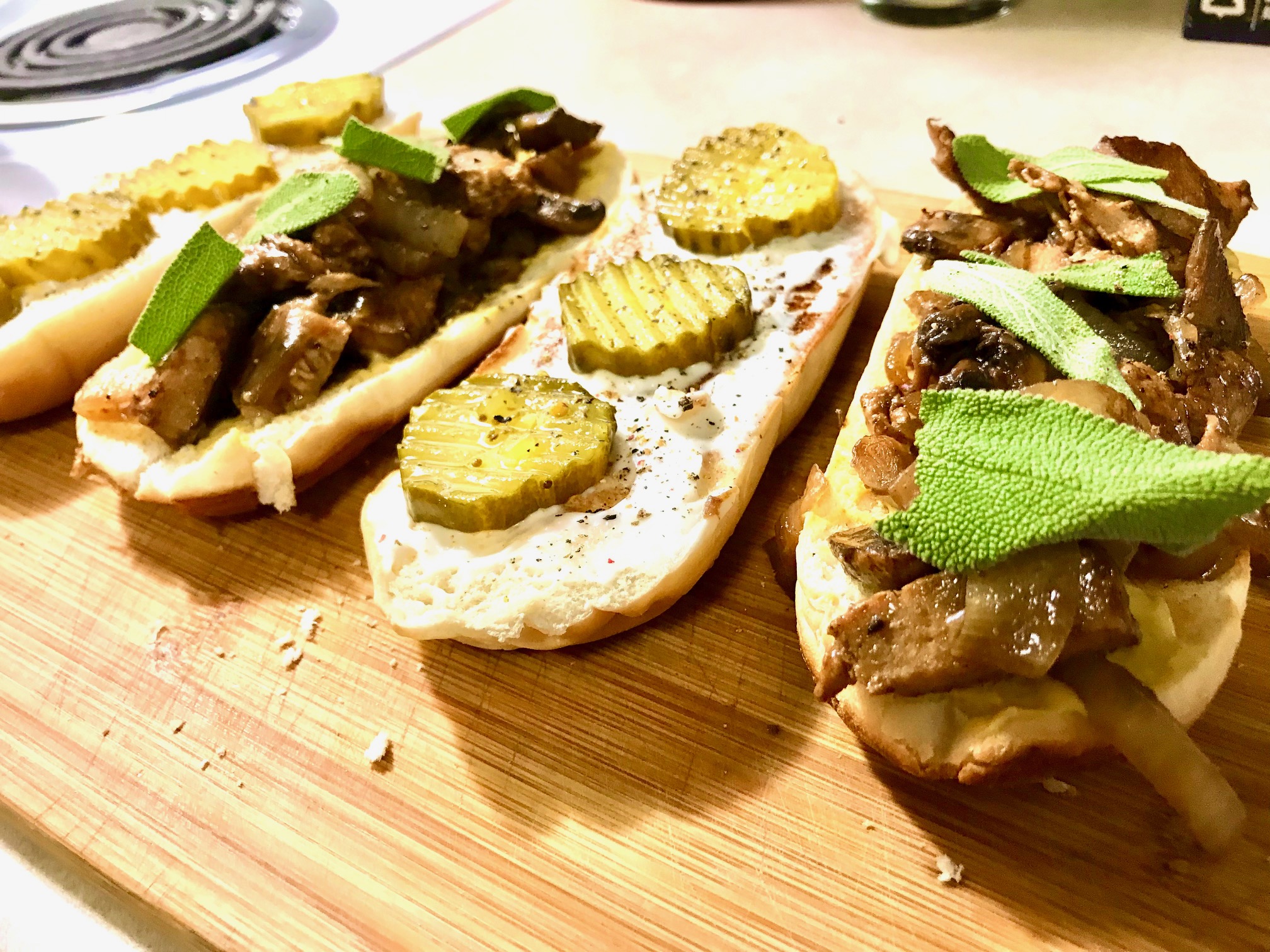 - steak and sausage rolls, toasted, or wait till assembled and grill