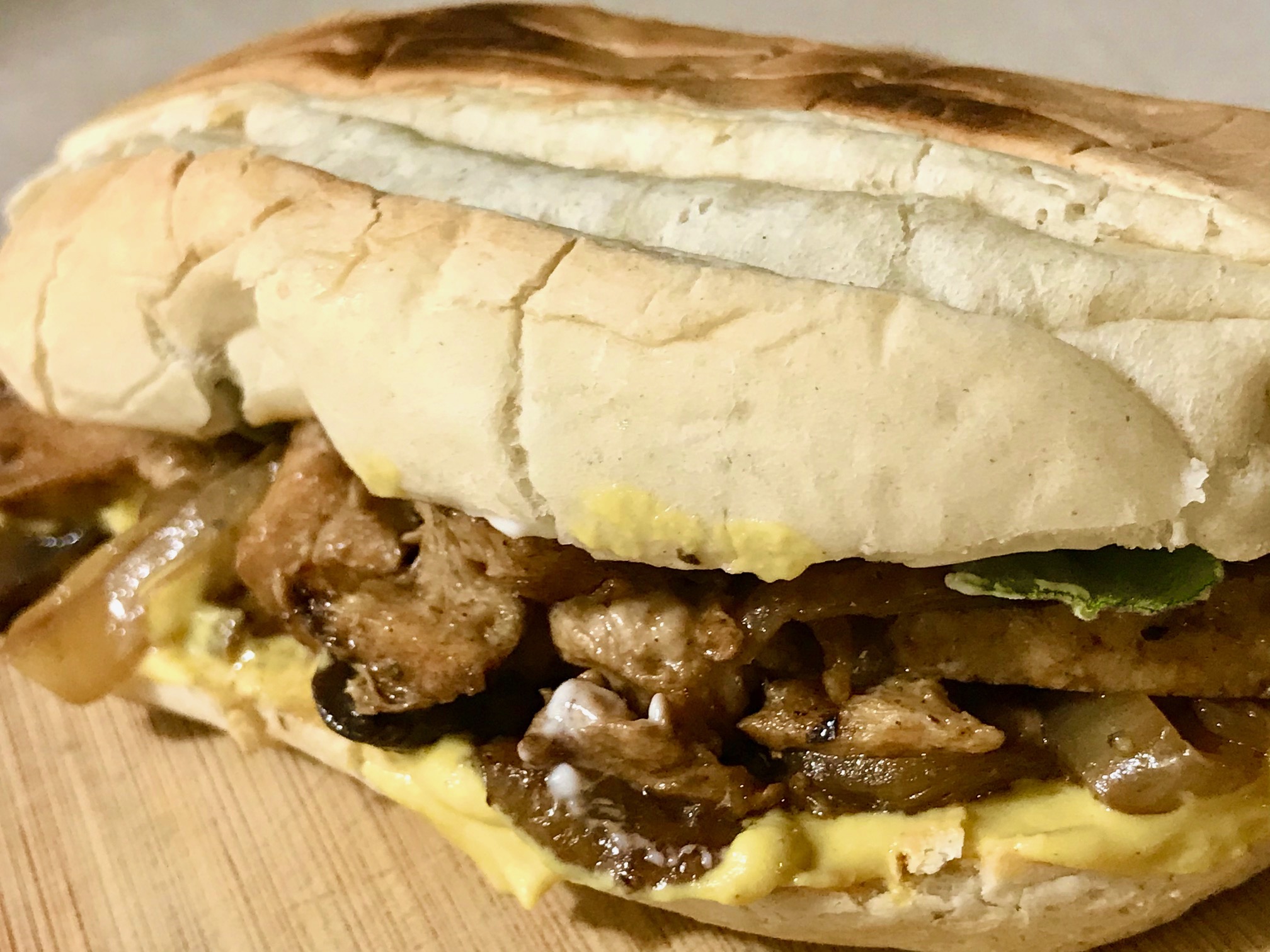 Hope you like veg mayonnaise. Hey, once the skillet preparation is complete, do whatever you want with it. I’m showing what we did, to advance an idea. There are a bunch of different applications for this skillet soy chicken.