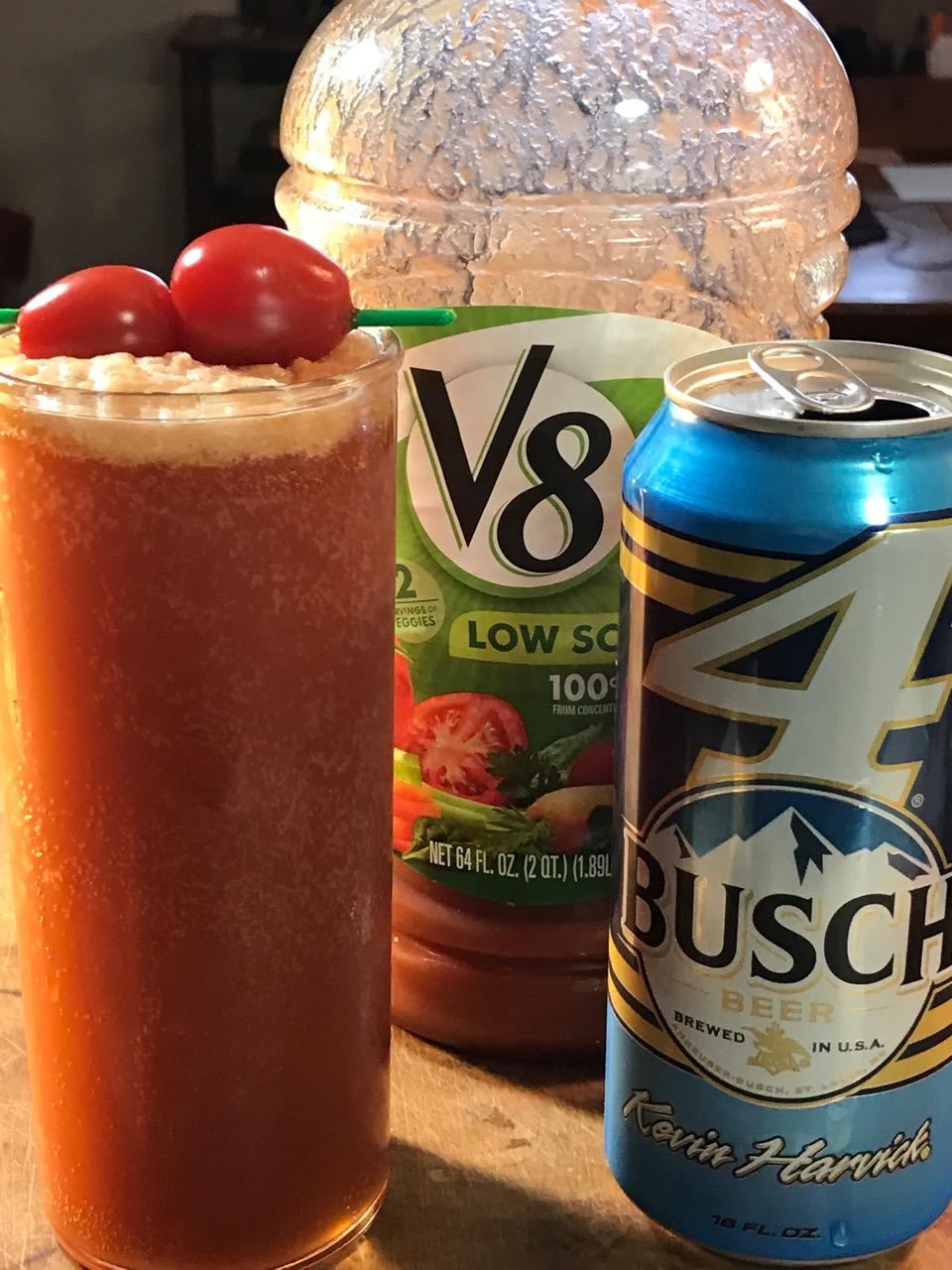 Using a tall glass filled (not over-filled) with ice, pour 1/2 beer and then 1/2 tomato juice about 3/4 inch from the top.