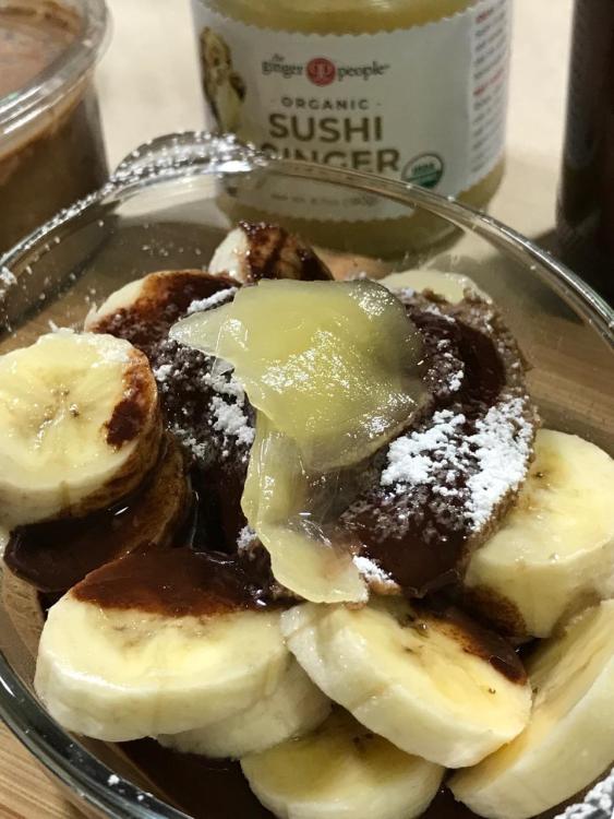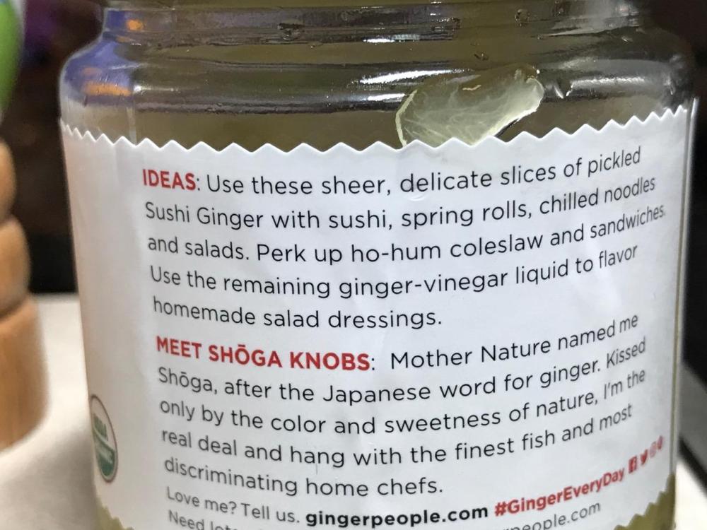 Then top with pickled sushi ginger. I used Organic Sushi Ginger by The Ginger People. If desired, drizzle a little of the ginger juice onto dessert.