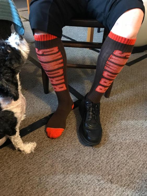 Steve put his Lucky Brown’s socks and colors on and I’m cooking up a storm. Yikes. This could be a high octane kind of night!
