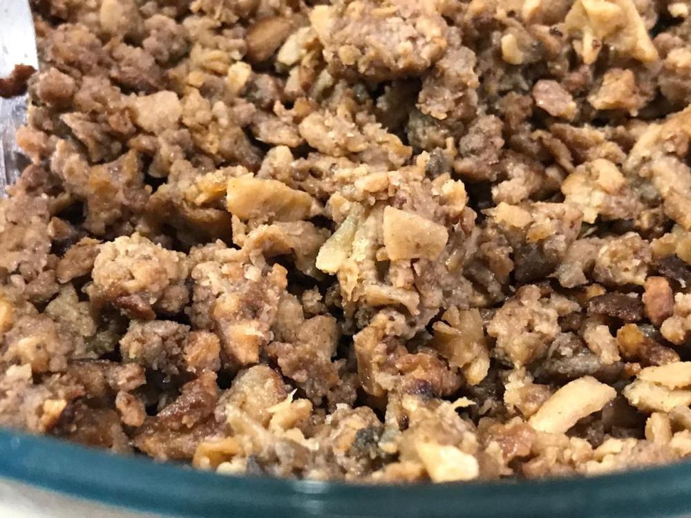 When done, turn off the heat and let set till the crumble cools to room temperature.