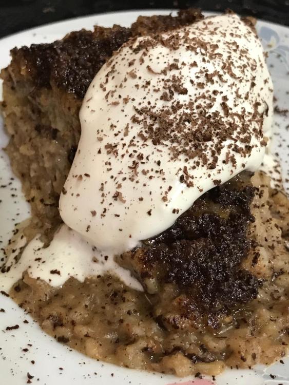 First top a slice of oat pie with grated chocolate and brown sugar and broil lightly or microwave till melted. Or heat in a lidded pan, then top with sugar and chocolate, return lid till melted.