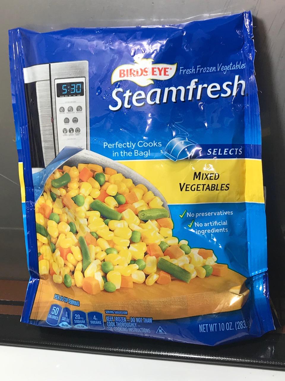 Later I needed another bag of frozen mixed vegetables and decided I would just thaw them on the counter. But then changed my mind and decided to microwave them for 5 minutes.