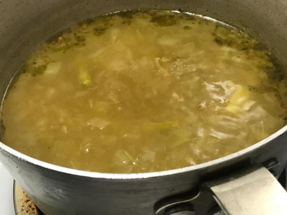 It’s also good served over boiled potato cubes as well as thin spaghetti, each time using more soup than starch.