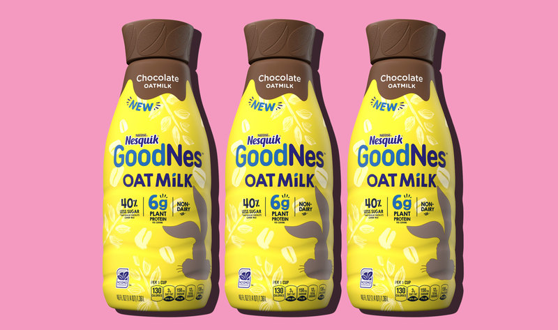 Nesquik, Nestle’s popular chocolate milk and drink mix brand, is debuting its first plant-based oat milk drink called GoodNes.