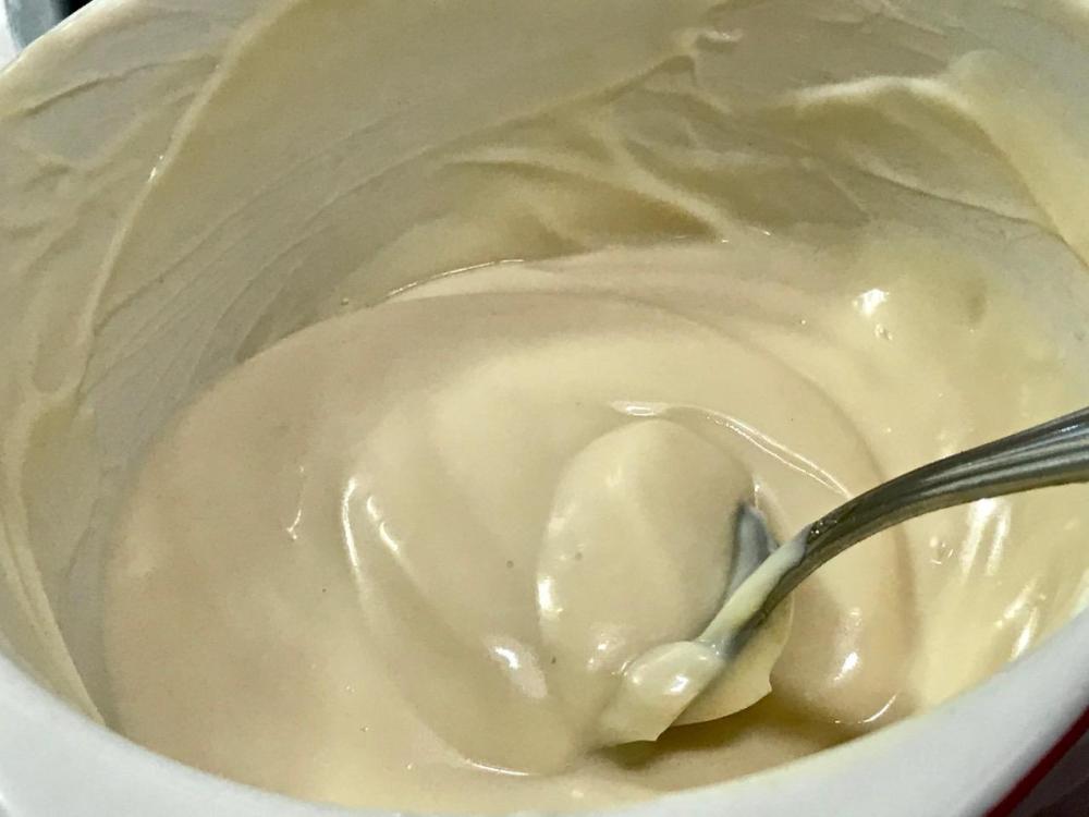 Combine all ingredients in mixing bowl. Stir till velvety smooth.