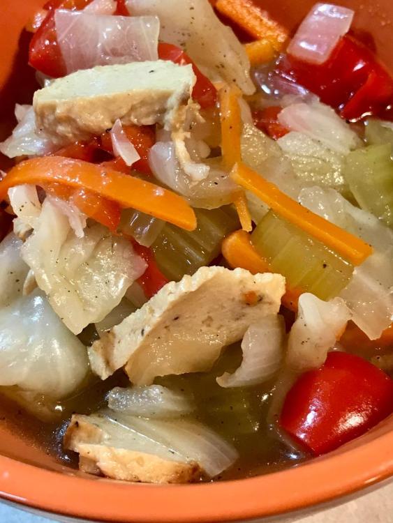 If you can find Delight Soy chicken nuggets, it doesn’t take much to make a plant chicken soup, that actually tastes like animal-based chicken soup. Simple, soothing and beneficial to you – the organism! Which proves you don’t need the stewed chicken or the marrow from the bones when you’re sick to make you feel better!