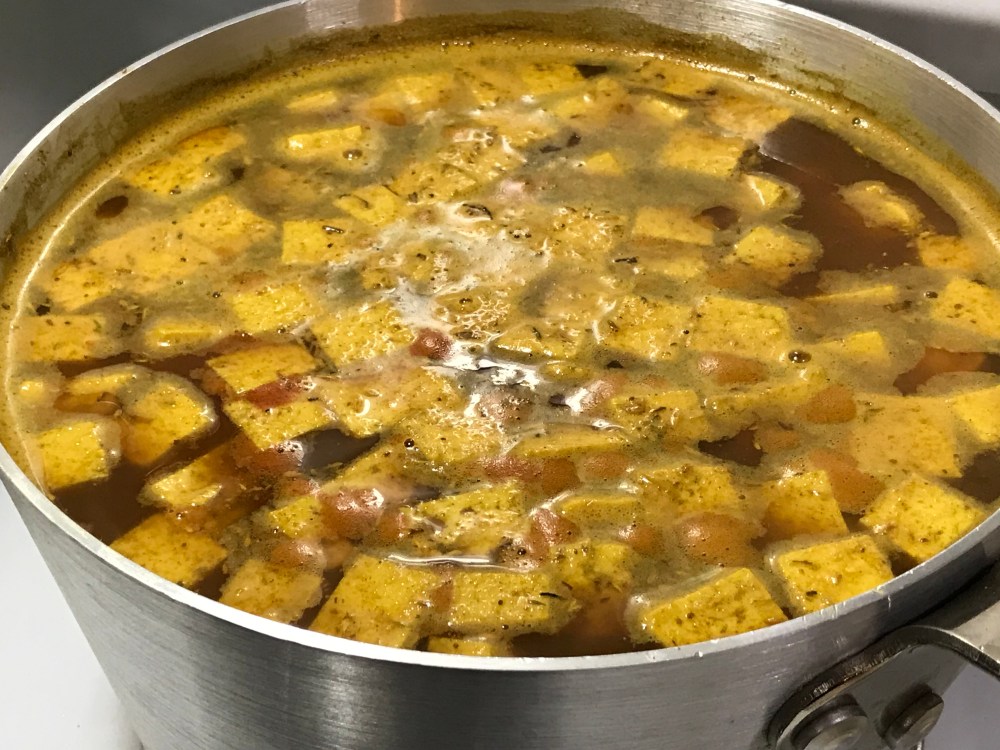 By simmering the tofu in the marinade for 1 hour, the flavors of the marinade really do permeate the tofu. But it needs that length of time cooking in the marinade to achieve that. Later, when added to the soup, the tofu cubes stay flavorful.