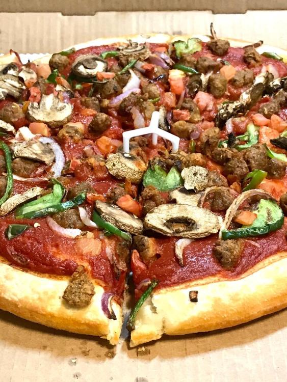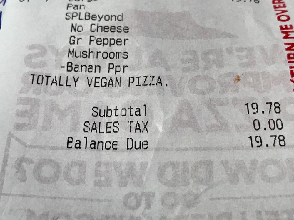 • The pizza in the ad photo has animal cheese on it along with the animal-free sausage. They should have called it the half and half pizza instead of Beyond Pizza.