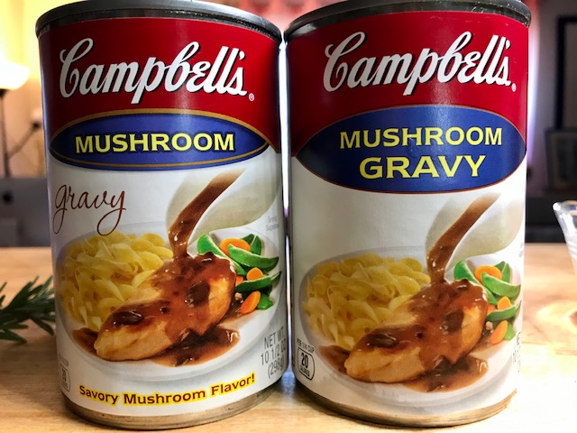 2, 10-1/2 oz. cans Campbell’s Mushroom Gravy plus 4 cans water
