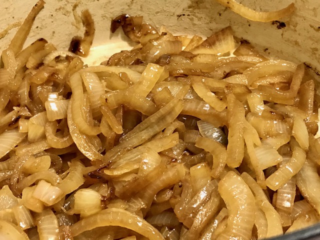 Notes: We cook the onion and mushrooms separately, so they’ll each cook evenly. Then we join them.
