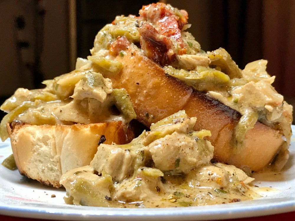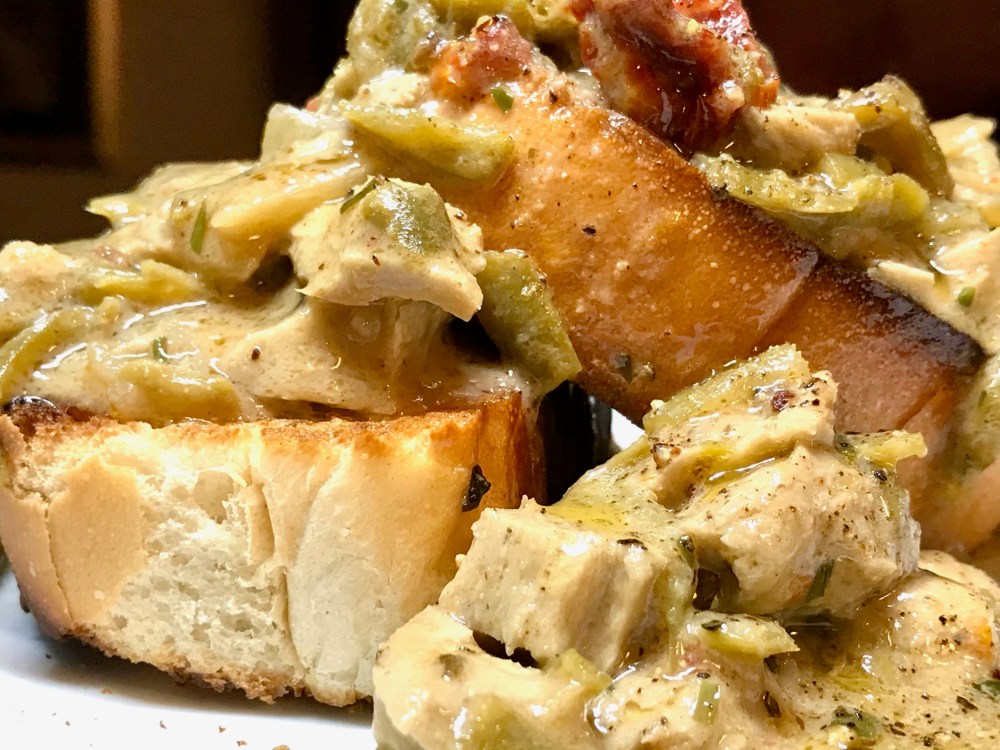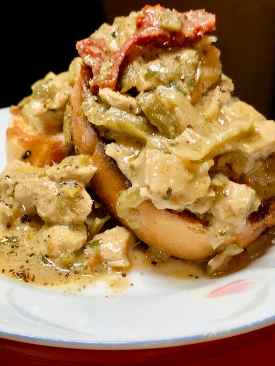 I found a loaf of fresh French baguette yesterday to use as a base for AFC CHICKEN FRICCASSEE. Really nice. Fresh bread is hard to come by these pandemic days.