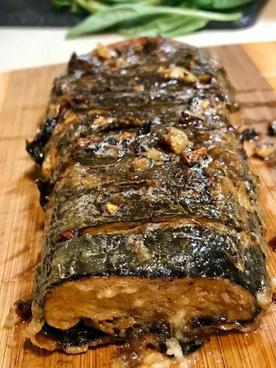 Pan-fried whole vegan salmon in cultured European Style vegan butter, extra virgin olive oil, garlic and lemon. Placed on top of a platter of Jasmine Jelly Rice. Served with Vegan Sour Bleu Cream and a side of Veggie Antipasto