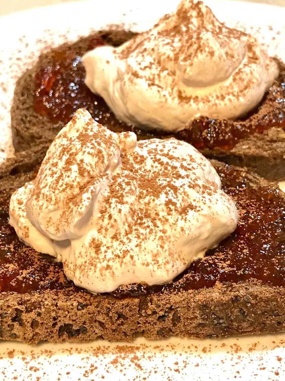 I served it on black Russian Toast minus the margarine because of the added whip topping. So I saved a few grams of fat.