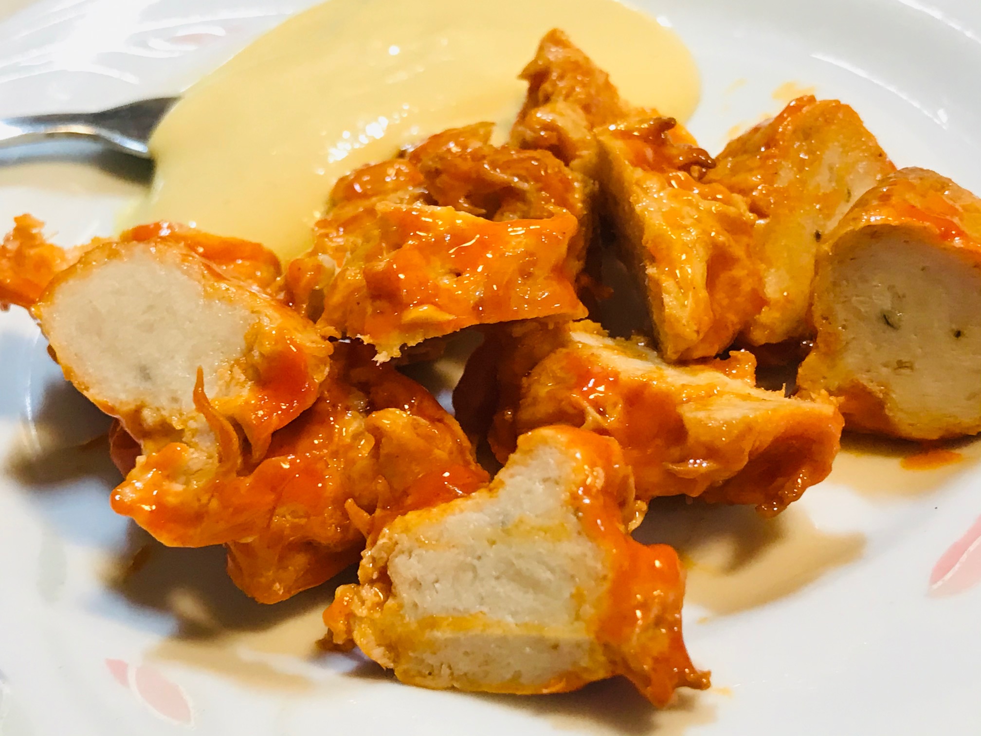 1- Cut the chilled buffalo nuggets into 2-3 pieces each.