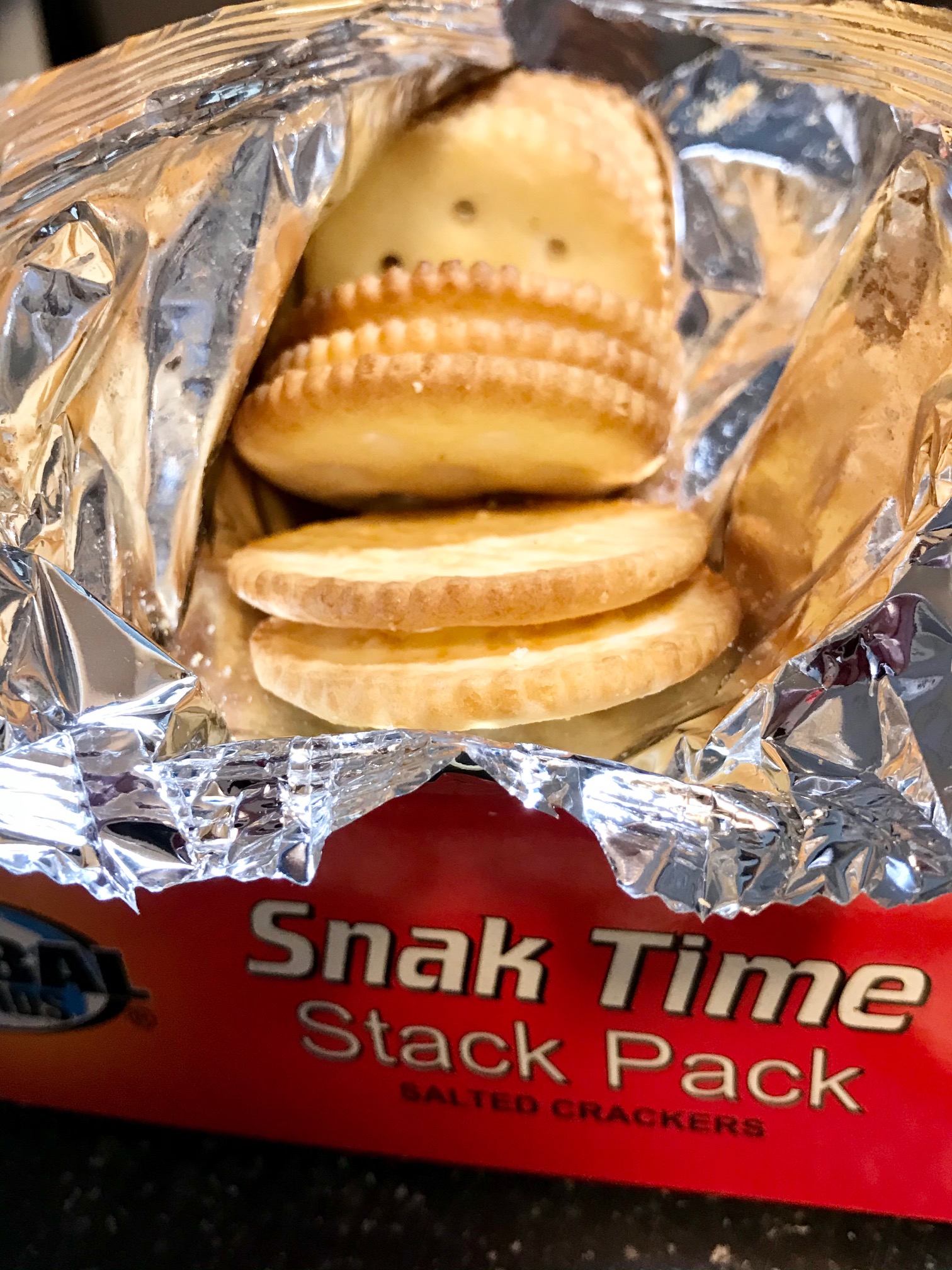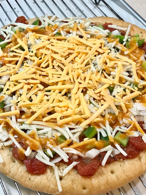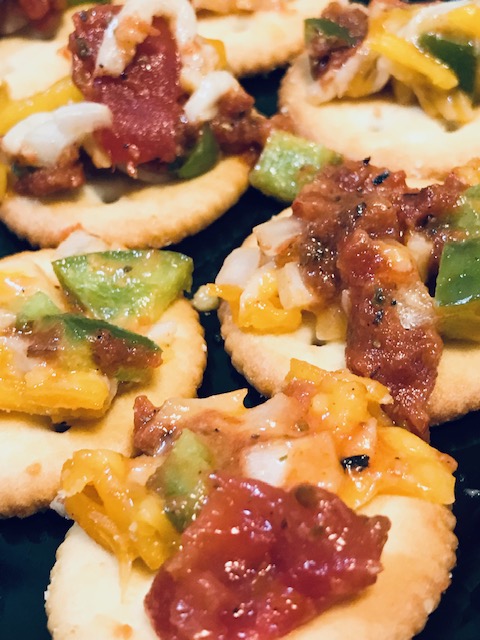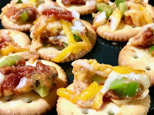 The crackers I used were SNAK TIME STACK PACK. The cracker was sturdy enough for the topping. CRAV’N CRACKERS would also have been sturdy enough.