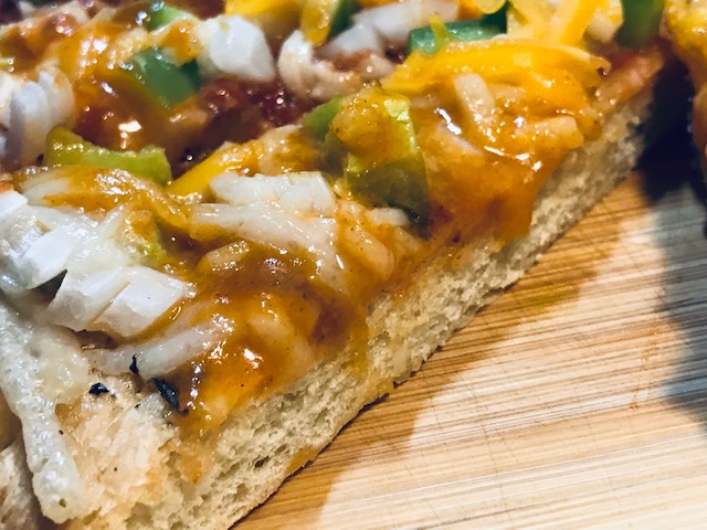 That crust looked good, no gummed up section in the middle, airy, just like we like it – until we tasted it and discovered the depth of dryness and staleness that neither of us could continue eating. It was that bad. It was like eating a super dense stale biscuit.