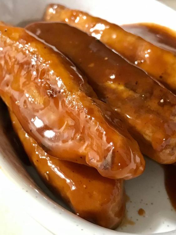 4- Pour the sauce over the tenders when you think the tenders are done. Swish them around the skillet, flip them, then cook till the sauce evaporates somewhat and they’re ready to be devoured.
