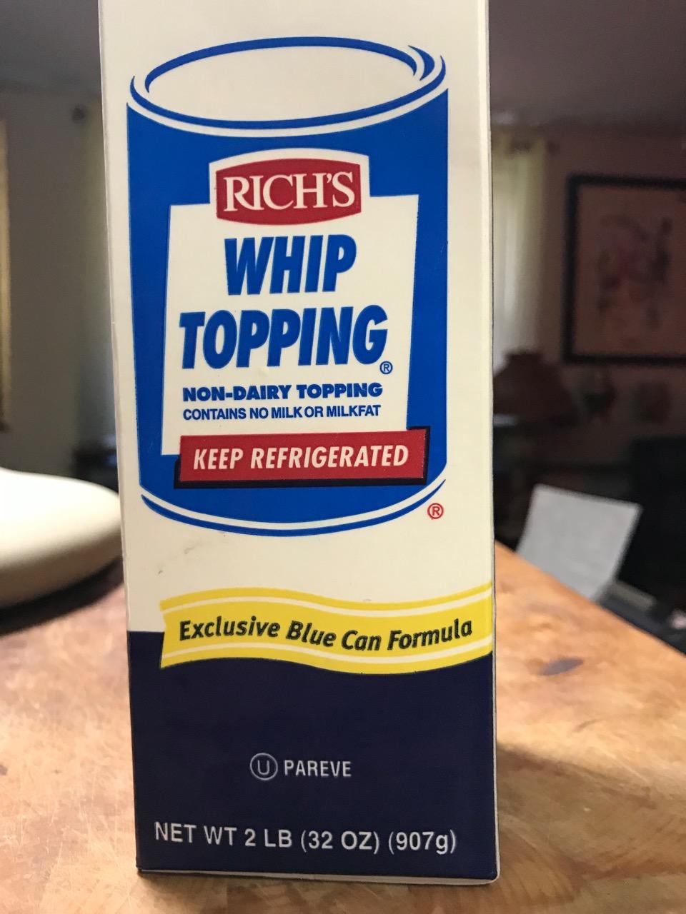 While you’re at it, try their WHIP TOPPING. Great for an ice-cream base or topping for dessert or a mousse frosting for a cake.