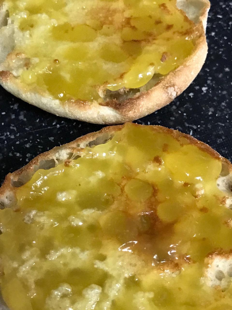 Creamy lemon spread on a toasted English muffin soaking into every nook and cranny. This is a treat to which I look forward!