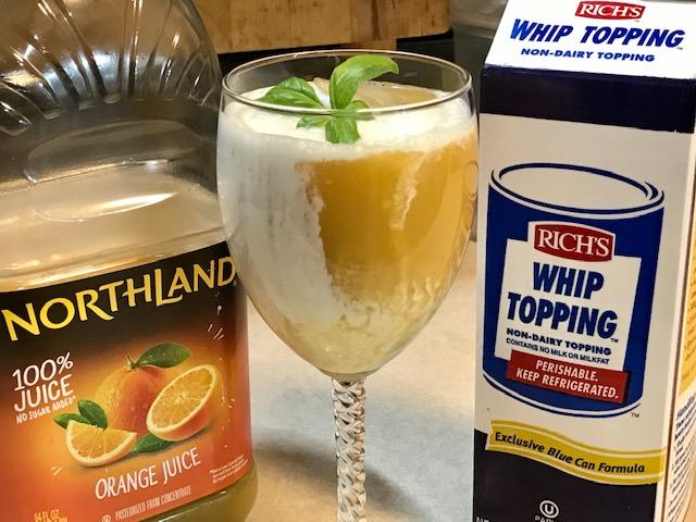 Float 2-3 Tablespoons of Rich’s Whip Topping, thawed, onto iced juice. Do not stir. Top with a fresh sprig of basil and serve.