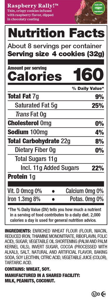 Here are the nutritional labels for the three types of cookies that appear to be animal-free. Not easy to find, which is another problem. It’s better to put them right out front on the website, so it doesn’t appear like you’re hiding something. You should be proud of the cookies containing no animal products.