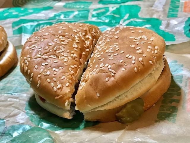 I tore a tip off a corner of the orange/yellow cheese to see what animal cheese tasted like these days. It was so thin, yet still stayed in one piece that one had to wonder what else besides animal milk did this cheese made for Burger King contain?