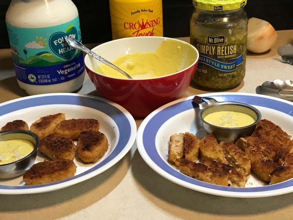 Serve with dipping sauce of choice. I went with a simple tartar sauce:
