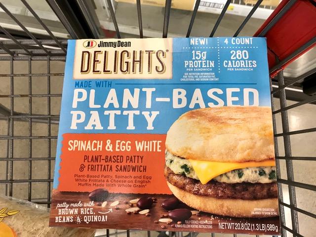 Jimmy Dean sells a plant-based burger with egg white in it. The cover box and ingredient list was designed to make the buyer think the product, the whole product, was plant, when in fact it wasn’t. That huge PLANT-BASED PATTY lettering strikes the brain as all plant, when indeed it is not.