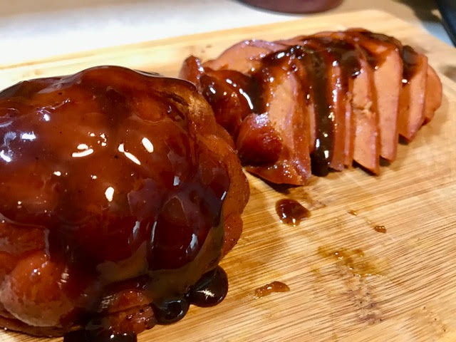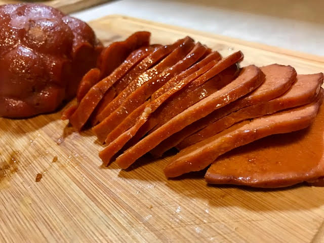 This animal-free ham did not conjure up those memories, instead it created new ones. It needs a little tweaking, but the basic elements were there. More fibrous, softer texture and a little more sweet. Although the glaze provided sweet, it didn’t permeate the plant ham. A success nevertheless!