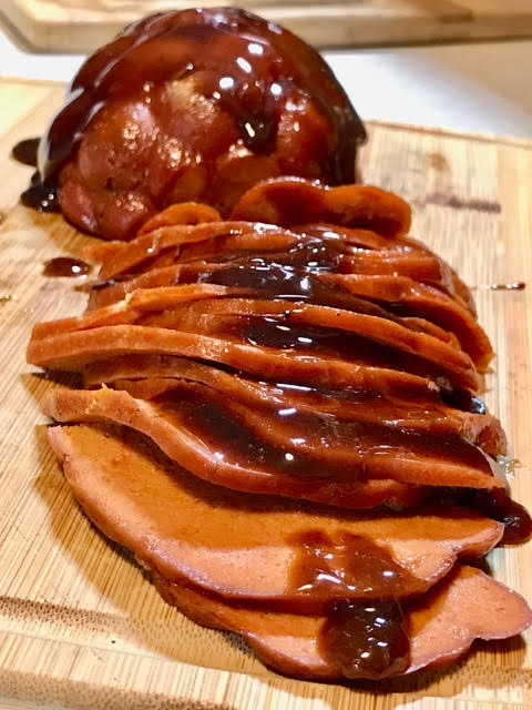 19 oz. Tofurky plant-based HAM STYLE ROAST, thawed and baked according to pkg. instruction – includes packet of glaze