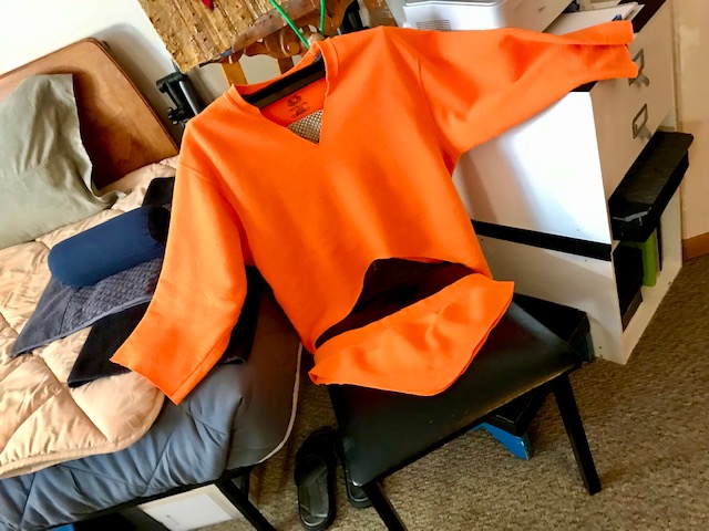 Make the arms and the bottoms shorter. V the neck for an open-air-breezy experience – even absent the wind!