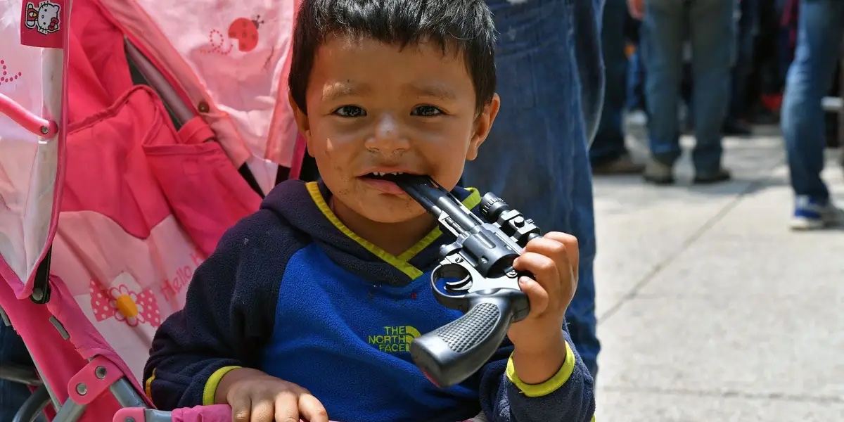 As the child pulls the trigger, it snaps halfway and a loud message rolls out saying, ‘ARE YOU SURE?