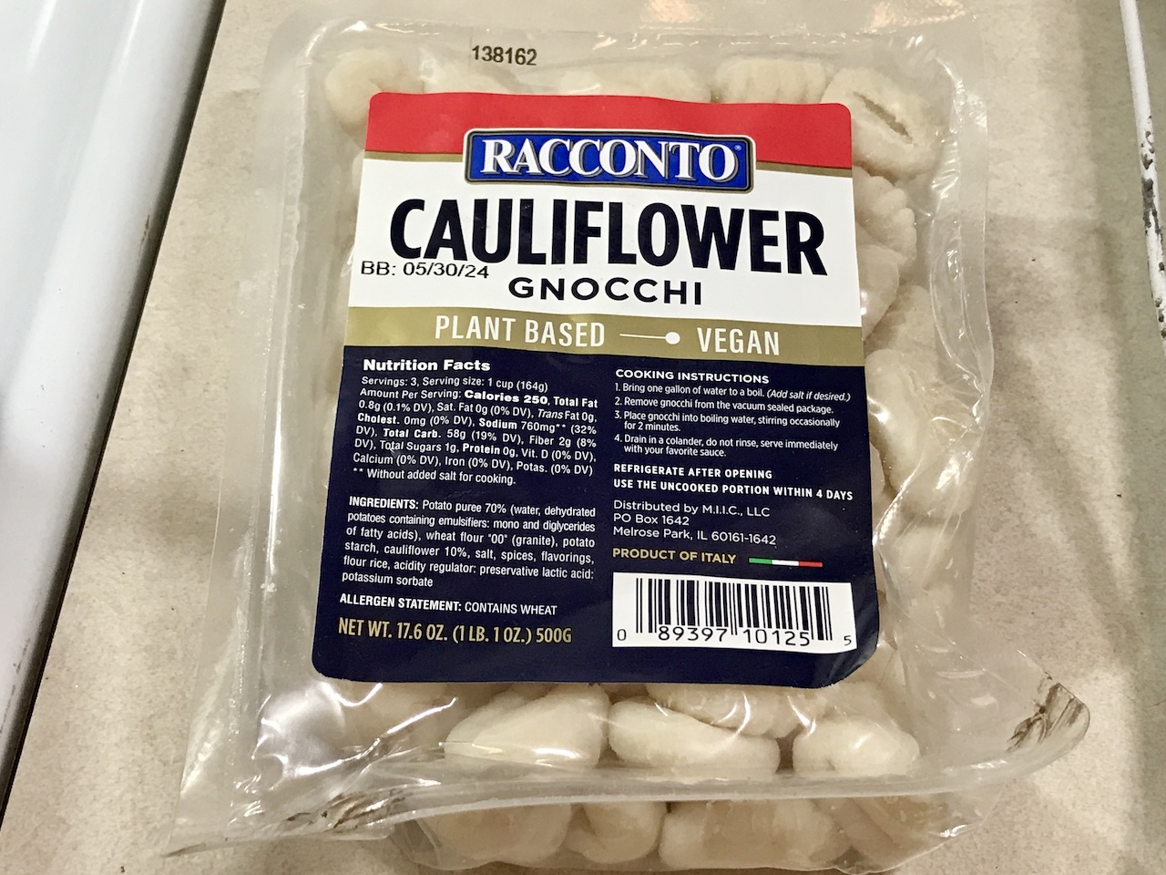 Looking further the pound of gnocchi contained only ten percent cauliflower; it wasn’t even the main ingredient.